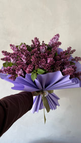 This beautiful Lilac Bouquet features a stunning arrangement of fragrant lilacs, elegantly wrapped in a matching lilac wrapping. Enjoy the delicate scent and charming colors of these lilacs.